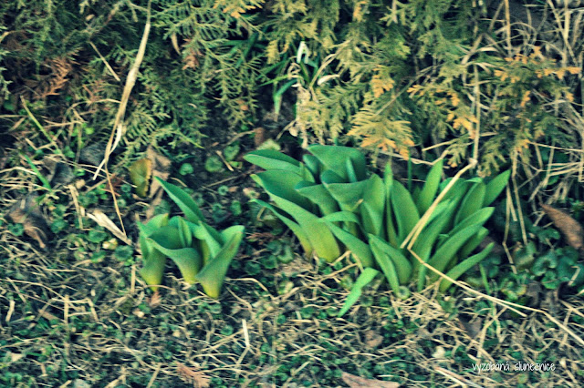 Začínají nám vylézat tulipány na všech možných a nemožných místech.