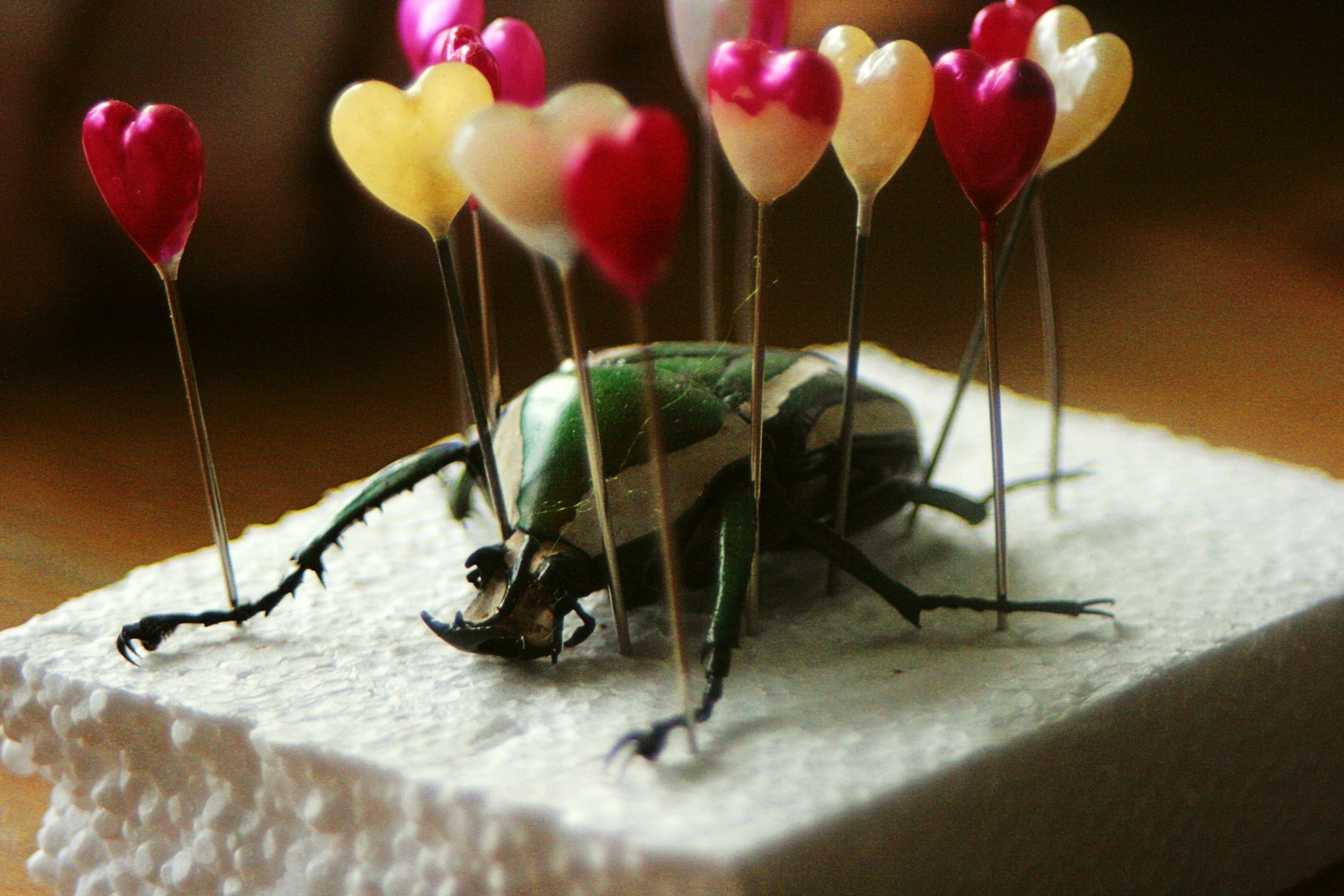 Ty poslední brouci se špendlíky, všimněte si, že nejsou propíchnuti, špendlíky slouží jen jako opora, odešli přirozeně, prostě uhynuli, tak jsou připraveni, aby ta krása mohla být dále vystavena.
