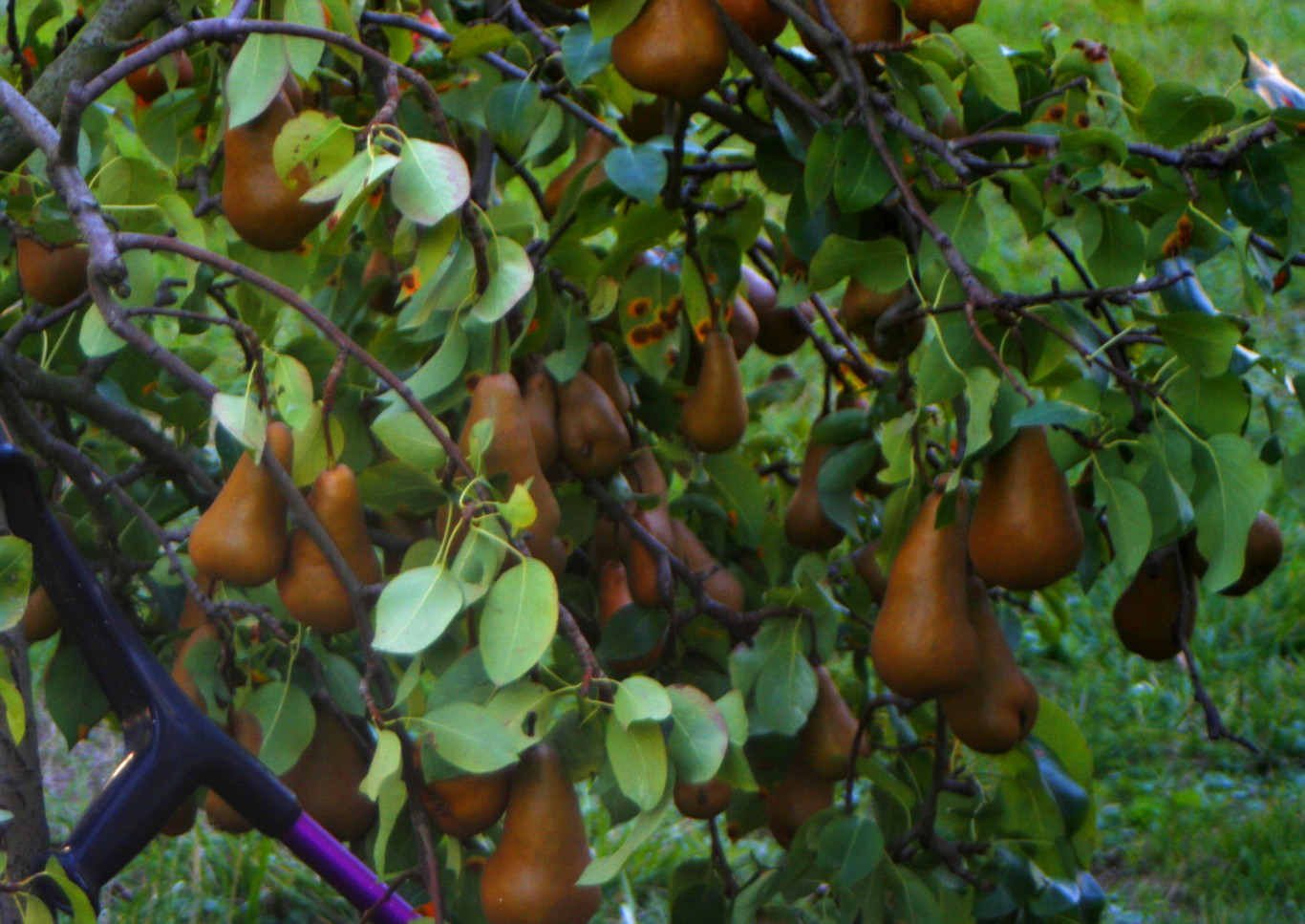 Bezva úroda. To bych taky brala. Já mám hrušky ráda. Na zahradě hrušku nemáme a u syna sice strom je, ale úroda žádná.